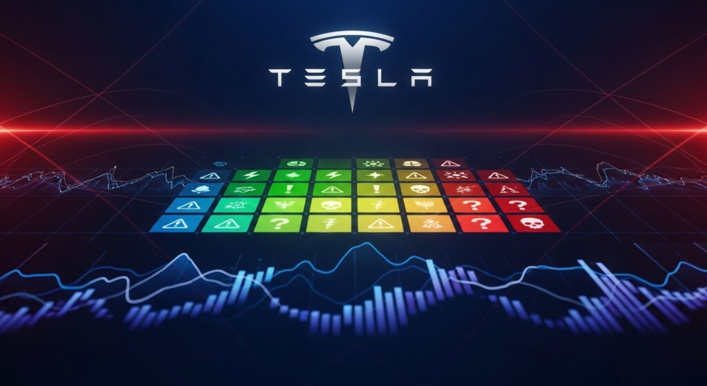 テスラ株は大きな成長余地を持つ一方で、投資家にとって無視できないリスクも存在します。以下では主要なリスク要因を整理した上で、将来のシナリオを複数パターンで分析します。